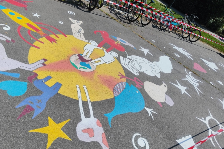 Malgré une belle avancée initiale, les conditions météorologiques exceptionnellement pluvieuses de 2024 ne nous ont malheureusement pas permis de mener le projet à terme pendant l’année scolaire 2023–2024, comme nous l’espérions. Nous comptions reprendre à l’automne, mais la météo n’était guère plus clémente. C’est donc avec regret que nous avons dû reporter une nouvelle fois la mise en peinture finale.